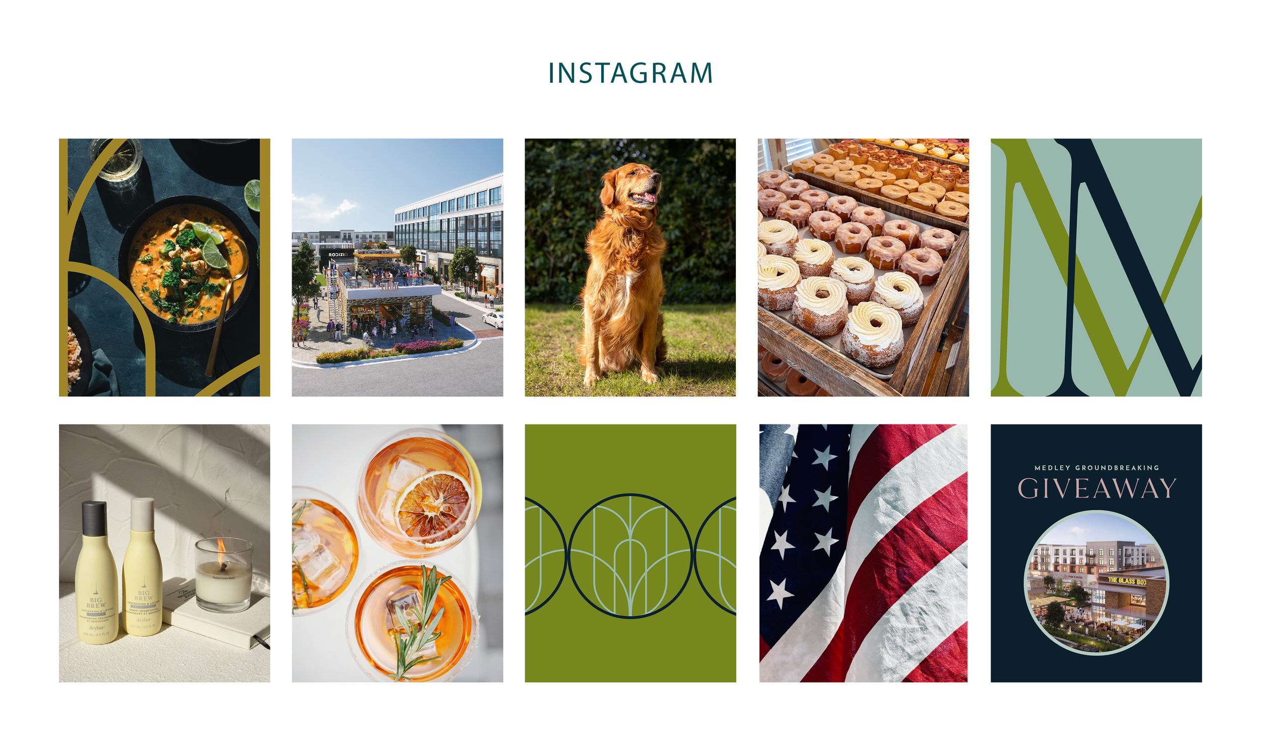 Medley is a mixed-use development in Johns Creek, developed by Toro Development Company and set to open in late 2026. I helped shape the brand identity by refining the primary logo, designing secondary marks, and contributing to the color palette and photography direction. My work spanned leasing brochures, social media creative, groundbreaking event materials, branded swag, website elements — and everything in between.